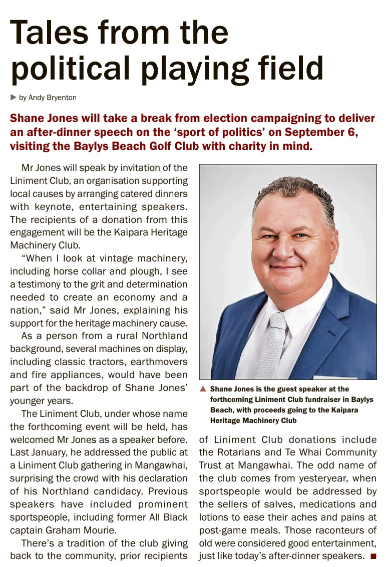 We welcomed back Shane Jones from NZ First to raise funds towards the Dargaville Vintage Machinery Club.
